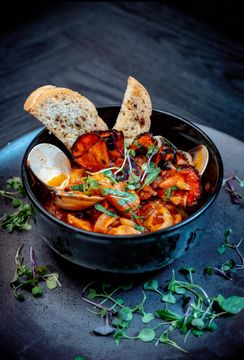 Shrimp, calamari, mussels and fish cooked in Mediterranean sauce and white wine