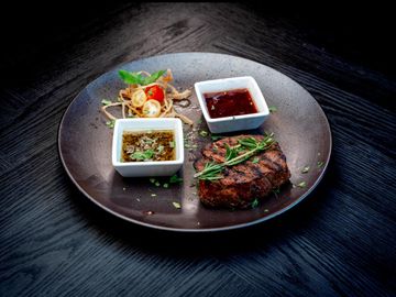 Bone-in cut seasoned with salt and pepper, grilled and served with chimichurri and rosemary